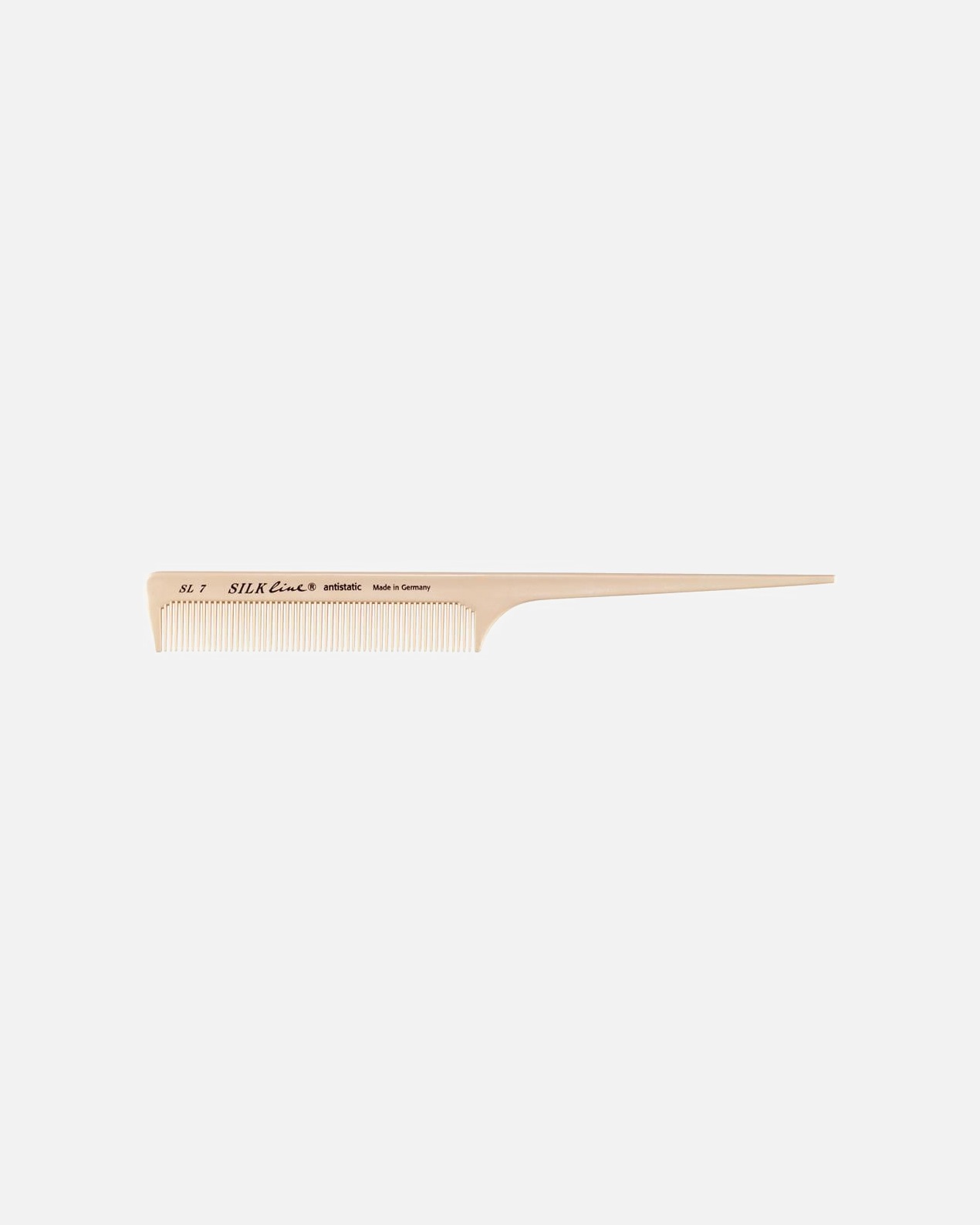 • Peine de cola de ratón: es uno de los peines más comunes. Se utiliza de manera habitual para colocar rulos, separar mechones y hacer mechas.